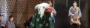 The music hearkens back to when the Nagasaki region of Toshima was an agricultural village, with an idyllic flute and brisk shime-daiko drum tempo. There is also a celebratory Kotobuki-jishimai lion dance.In 2002, the troupe became a Toshima Designated Intangible/Tangible Folk Cultural Property.